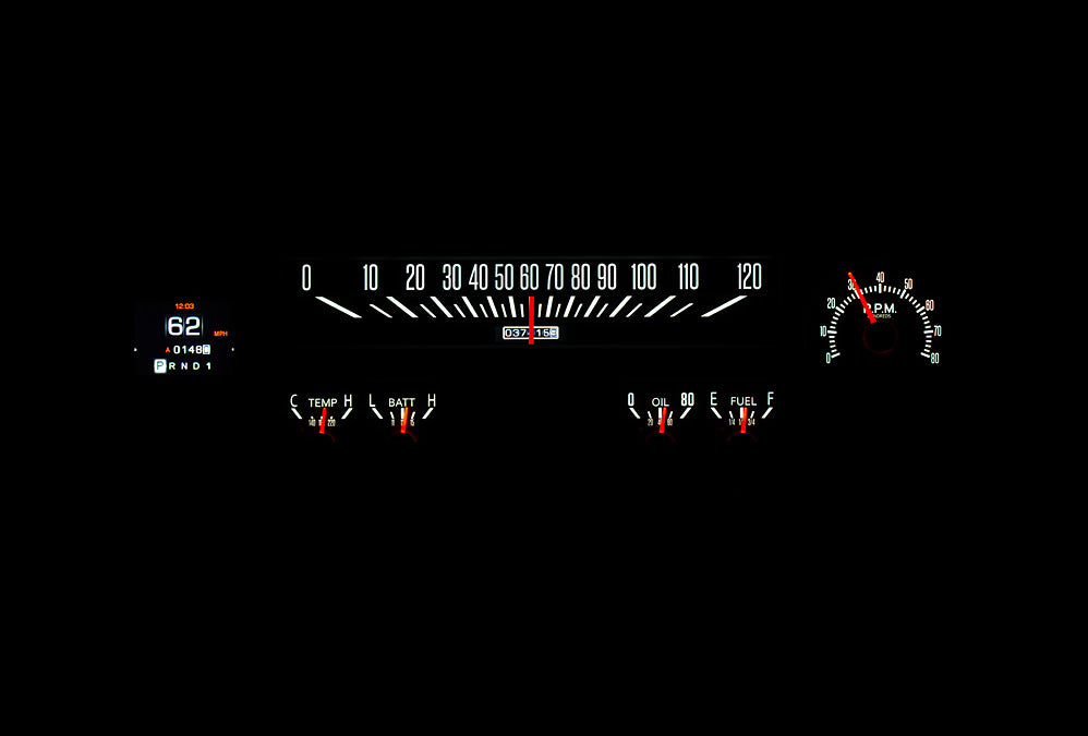 You can stop searching for a factory tach cluster for your 1964-66 C10. The RTX-64C-PU offers the vintage look you want with modern capabilities you need. Boasting a 2.4” TFT message center on the left, you can add just about any additional information you like, while the analog tachometer on the right lets you keep an eye on the revs. A small display in the center contains a simulated tumbler odometer. System requires stock or reproduction bezel for installation, not supplied. Does not fit GMC.