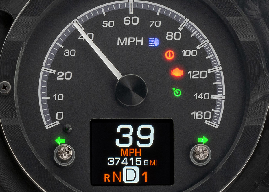 Available with your choice of black or silver alloy gauge-face styling, each HDX system allows the user to select independent illumination colors for the gauge readings and needles, as well as the message centers. Calibration and personal settings are manipulated with the built-in, capacitive-touch buttons, or the available Bluetooth app for Apple and Android devices. Each needle hub is black nickel plated spun-aluminum to match the buttons. All HDX instrument systems feature dead-faced indicators (turn signals, high beam, check engine, cruise control, parking brake, plus two user-definable), and a red, settable warning light for each gauge. With our central control box, installation is greatly simplified with vehicle-harness sourced signals and supplied, solid state sending units connecting cleanly to their respective terminal. Click the tabs below for a more in-depth look at the HDX series!
